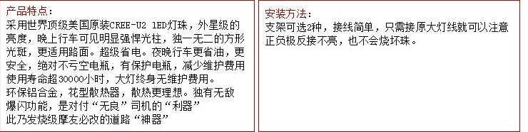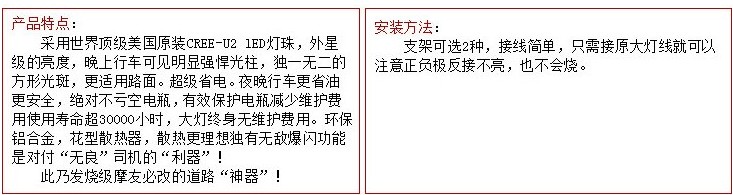 采用美国CREE U2灯珠精致而成! DC12V之85V通用 近光远光 爆闪 功能