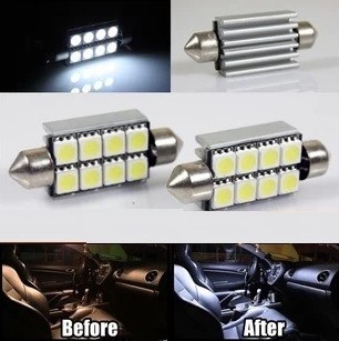 型号:canbus解码防报警 双尖8 SMD5050 41mm 1.灯座名称:双尖 41mm 2.组合灯数:8颗三芯亮度5050SMD贴片 此价格为一只产品的价格 适用车型:奔驰 宝马 奥迪 等车型 |